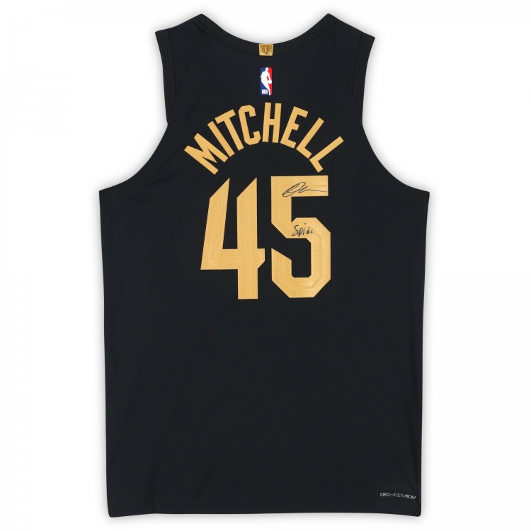 Donovan Mitchell Cleveland Cavaliers Autographed Fanatics Authentic Black Nike Statement Edition Authentic Jersey with Spida Inscription