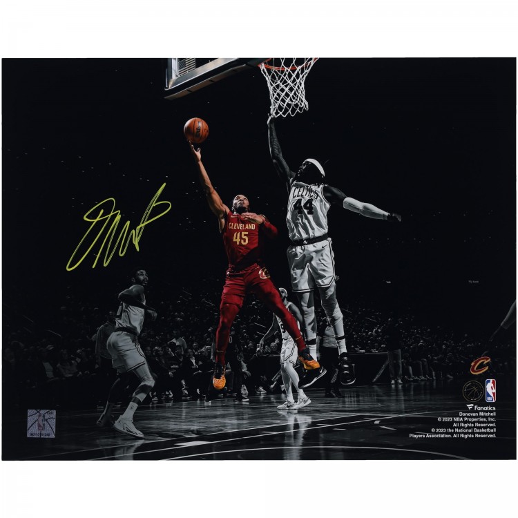Donovan Mitchell Cleveland Cavaliers Fanatics Authentic Autographed 11 x 14 Spotlight Layup Versus Boston Celtics Photograph