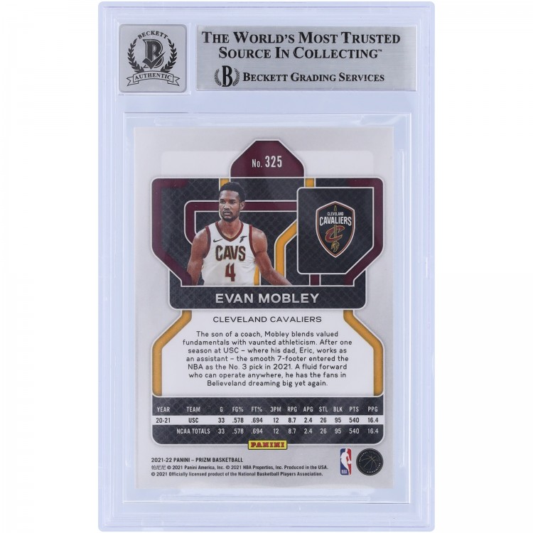 Evan Mobley Cleveland Cavaliers Autographed 2021-22 Panini Prizm #325 Beckett Fanatics Witnessed Authenticated 10 Rookie Card