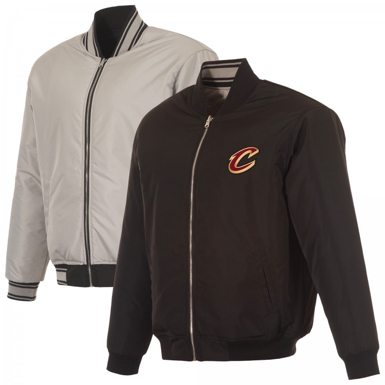 Cleveland Cavaliers JH Design Black/Gray Reversible Full-Zip Flight Jacket