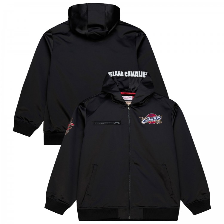 Cleveland Cavaliers Mitchell & Ness Black Hardwood Classics Nights Walk the Tunnel Satin Bomber Full-Snap Hooded Jacket