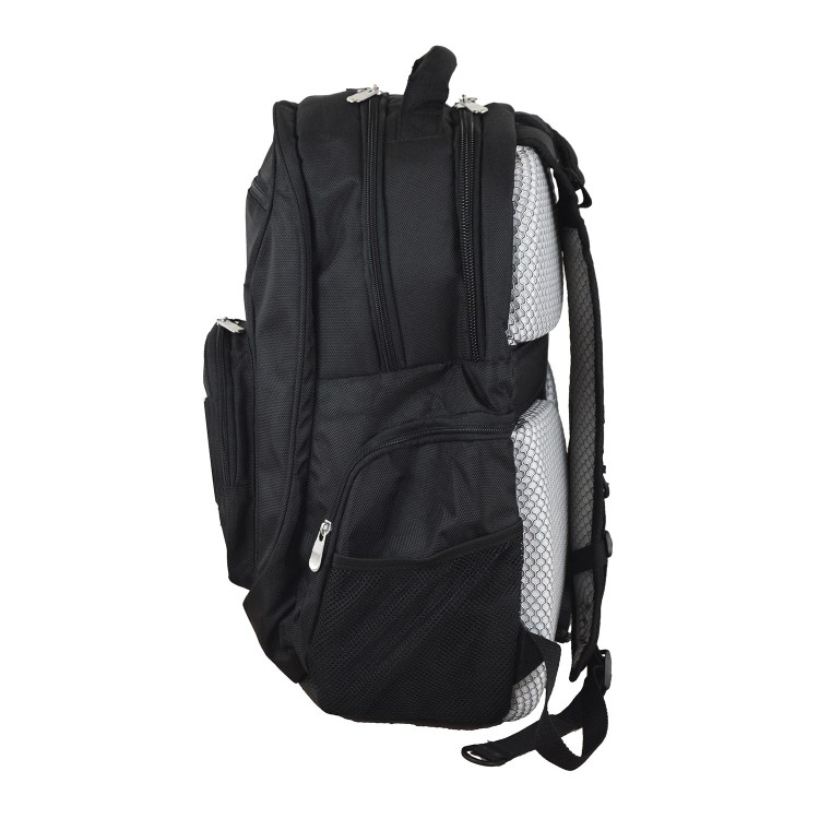Padded 3' wide adjustable shoulder straps with D rings and sternum strap for comfort