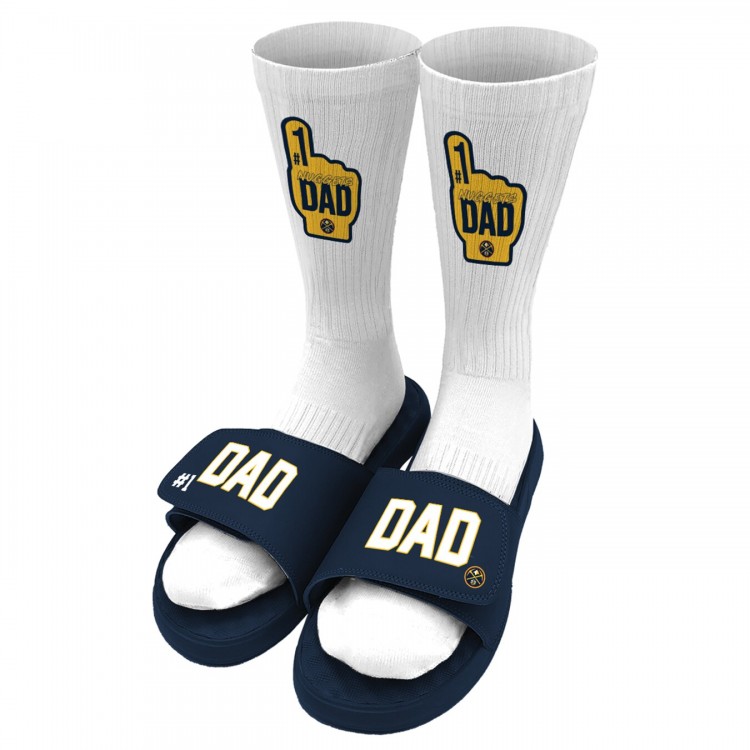 Шлепки Unisex Denver Nuggets ISlide Navy #1 Dad Socks & Bundle