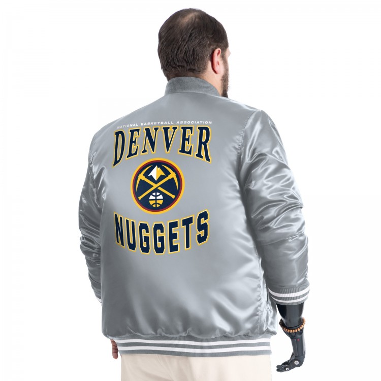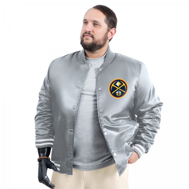 Denver Nuggets G-III Sports by Carl Banks Gray Adaptive Bold Logo Satin Varsity Jacket