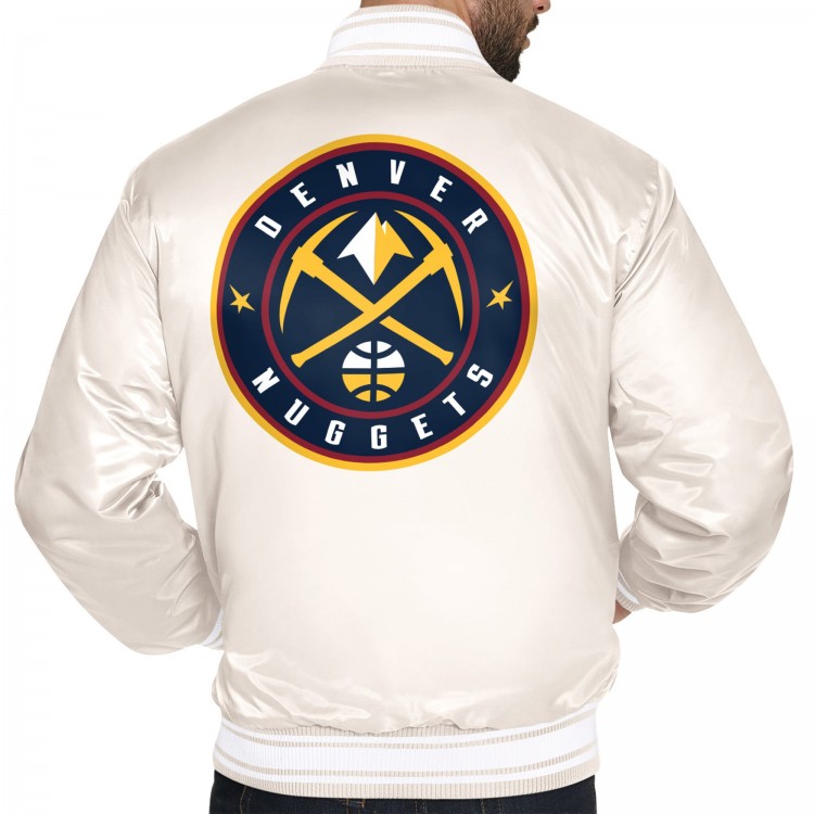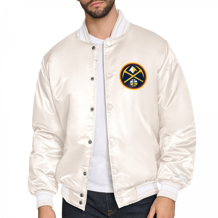 Denver Nuggets Starter Cream Double Team Satin Varsity Full-Snap Jacket