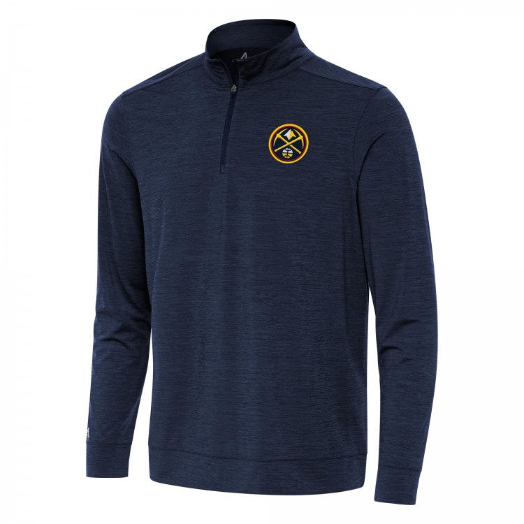Denver Nuggets Antigua Heather Navy Bright Quarter-Zip Top