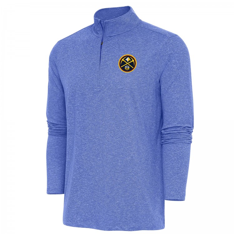 Denver Nuggets Antigua Heather Royal Hunk Quarter-Zip Pullover Top