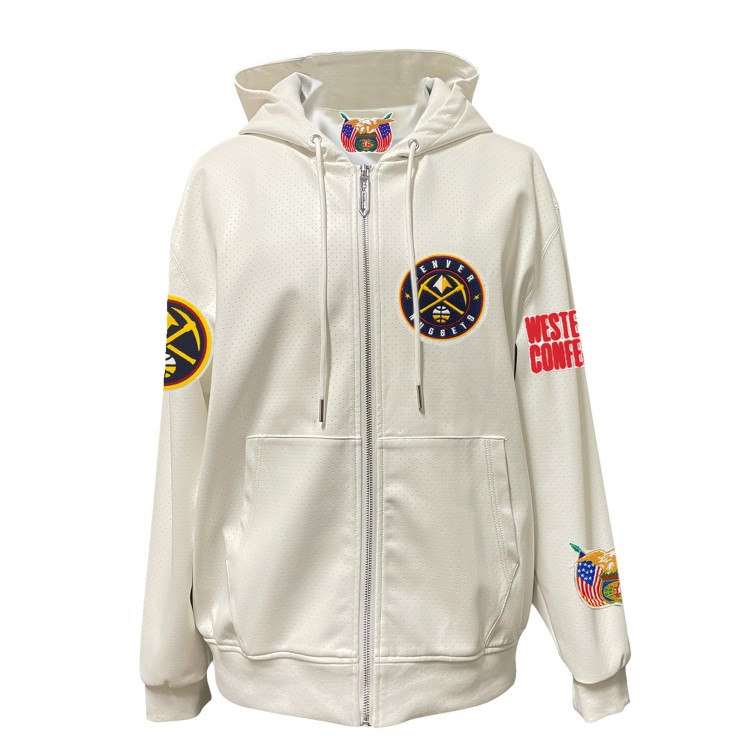 Толстовка на молнии Denver Nuggets Jeff Hamilton White Vegan Leather