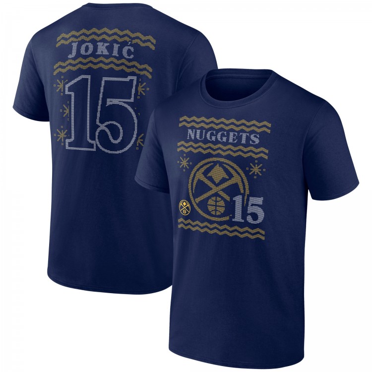Denver Nuggets Nikola Jokic Navy Ugly Sweater Name & Number T-Shirt