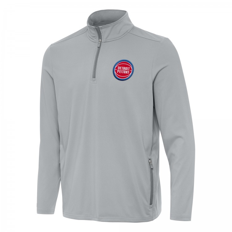 Detroit Pistons Antigua Gray Perilous Quarter-Zip Sweatshirt