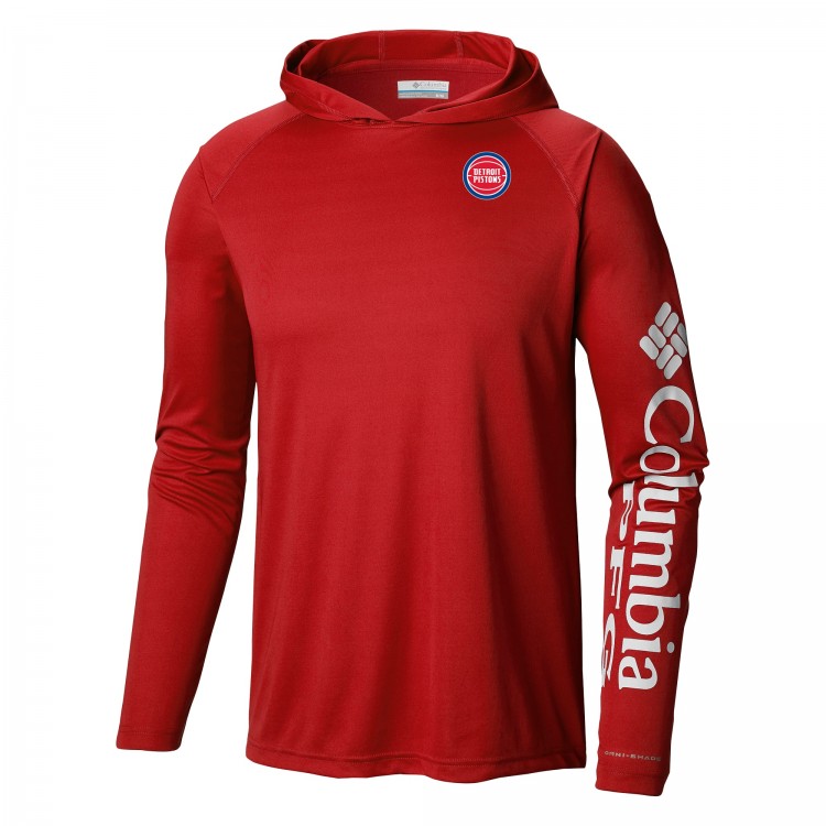 Detroit Pistons Columbia Red Terminal Tackle Long Sleeve Hoodie T-Shirt