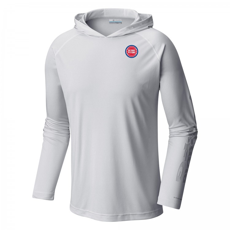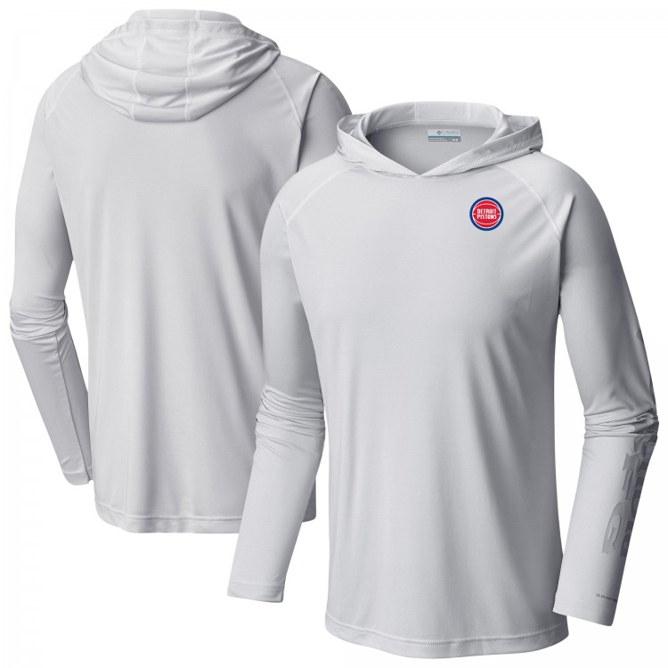 Detroit Pistons Columbia White Terminal Tackle Long Sleeve Hoodie T-Shirt