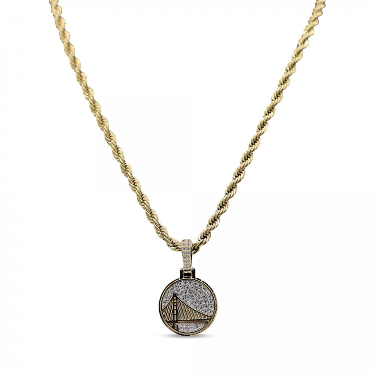 Golden State Warriors GLD 18K Yellow Gold Logo Pendant & 20 Rope Chain