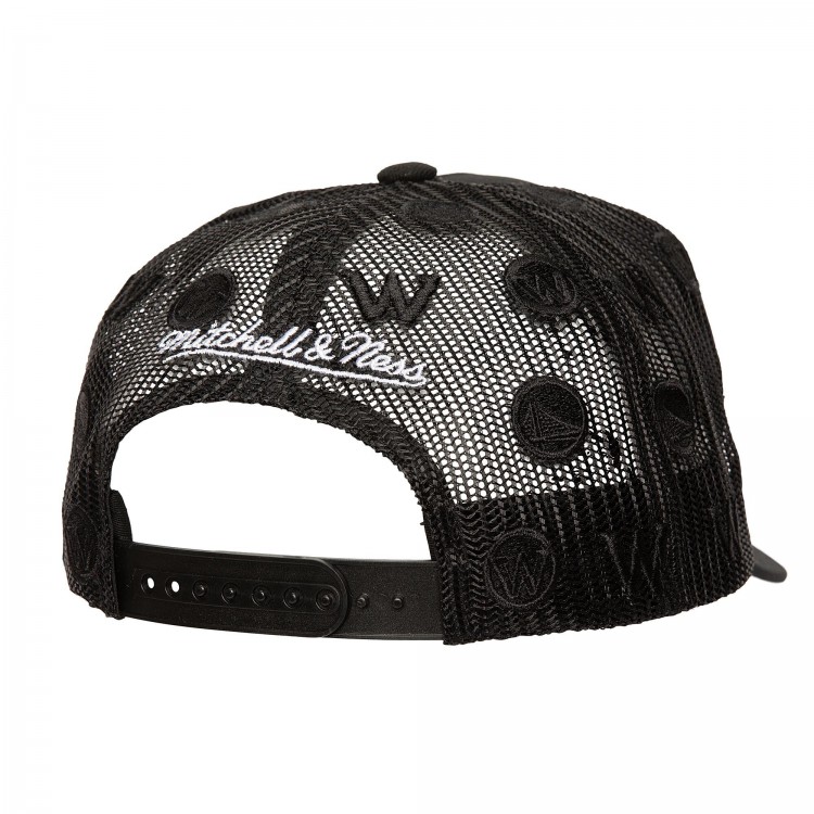Бейсболка Golden State Warriors Mitchell & Ness Monogram Allover Logo Mesh Trucker - Black