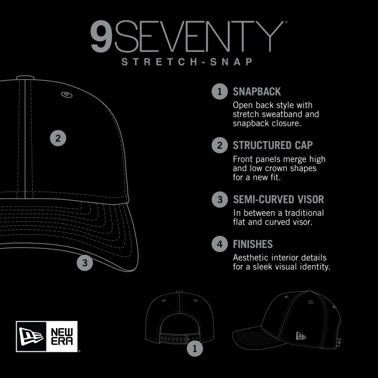 The 9SEVENTY provides a modern adjustable fit and versatile style with its structured crown, semi-curved visor and performance stretch sweatband
