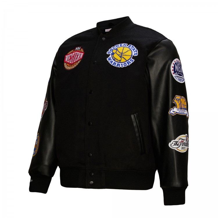 Golden State Warriors Mitchell & Ness Black Hardwood Classics Blackout Collection Full-Snap Varsity Jacket
