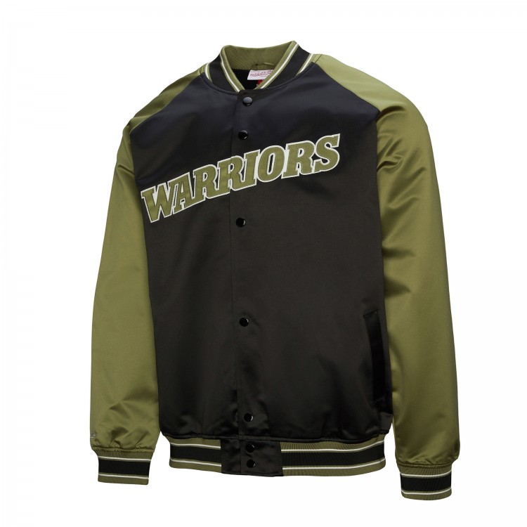 Golden State Warriors Mitchell & Ness Olive/Black Clutch Satin Raglan Full-Snap Jacket