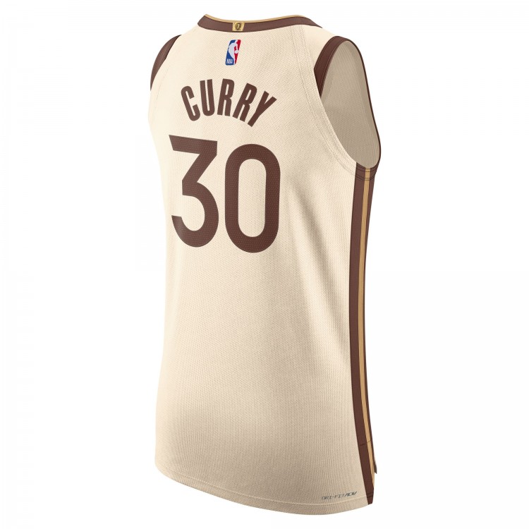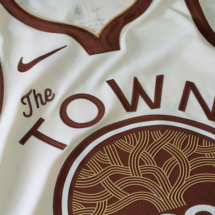 The 2025/26 Golden State Warriors City Edition Jersey (originally released in 2019/20) honors The Town and its rightful place in team lore. A fresh cream base signifies the team's strength and intensity. The tone-on-tone modern design features a rich dark brown, natural cream, and a touch of gold. The intentional color palette embodies the pride, grit, strength, and enduring legacy of the team, the community, and the culture of Oakland, which was home to the Warriors for 47 seasons.
