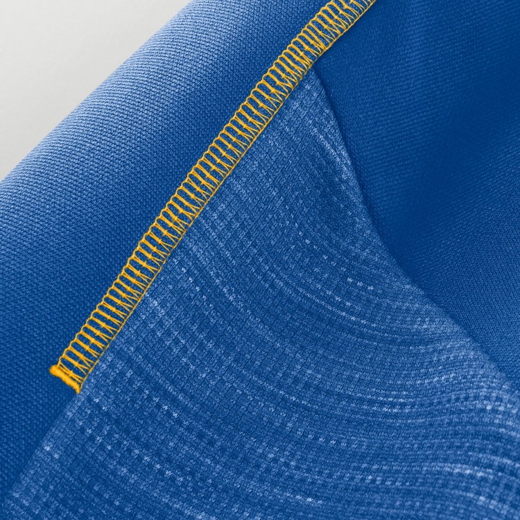 Silicone team name heat-sealed across the back has a smooth, rubberized finish that's designed to stretch with the fabric without cracking