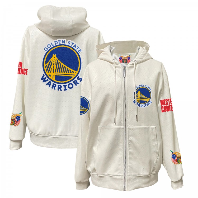 Толстовка на молнии Golden State Warriors Jeff Hamilton White Vegan Leather