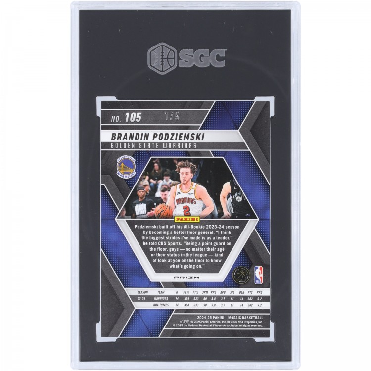 Brandin Podziemski Golden State Warriors 2024-25 Panini Mosaic Gold Glitter Prizm #105 #1/5 SGC Authenticated 10 Card