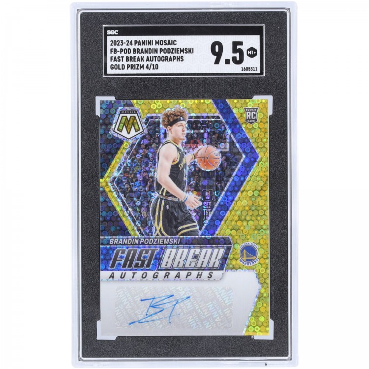 Brandin Podziemski Golden State Warriors Autographed 2023-24 Panini Mosaic Gold Prizm Fast Break #FB-POD #4/10 SGC Authenticated 9.5 Rookie Card