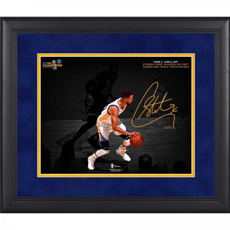 Golden State Warriors Stephen Curry Fanatics Authentic Framed 11 x 14 2017 NBA Finals Champions Triple-Double Spotlight Photograph - Facsimile Signature