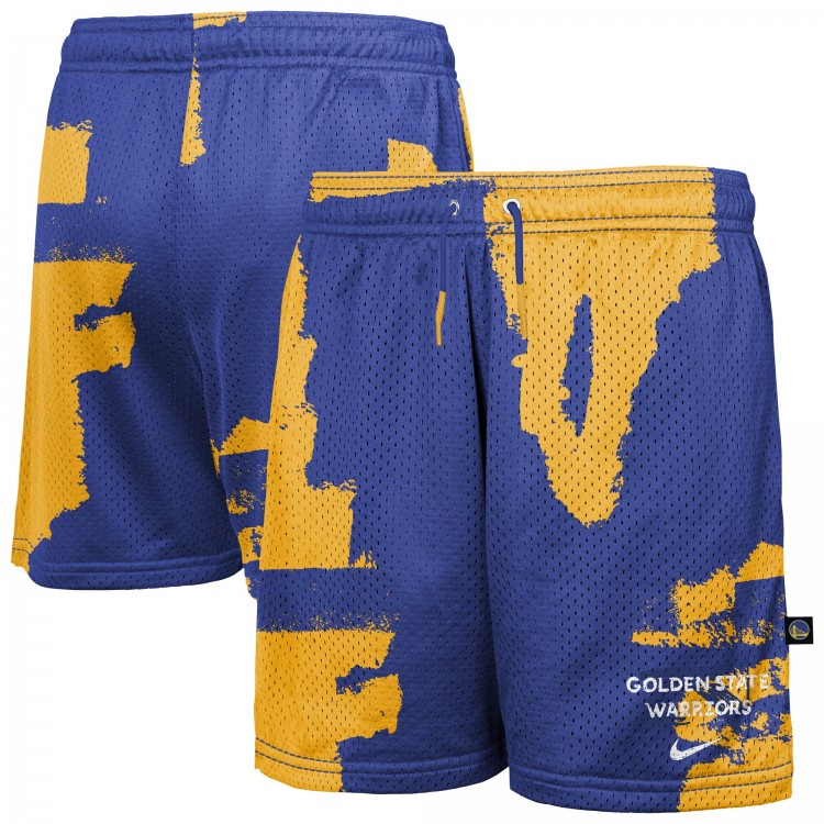 Подростковая Golden State Warriors Nike Royal/Gold Courtside Pro Shot Dri-FIT Mesh Practice Shorts