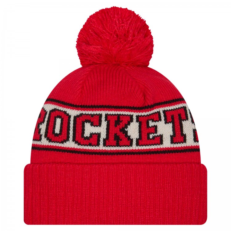 Шапка с помпоном Houston Rockets New Era Red Throwback Retro Cuffed Knit