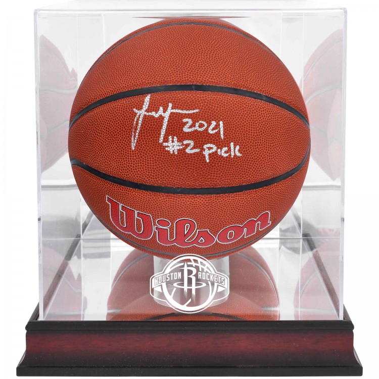 Баскетбольный мяч с подставкой Jalen Green Houston Rockets Fanatics Authentic Autographed Wilson Team Logo with 2021 #2 Pick Inscription & Mahogany Team Logo
