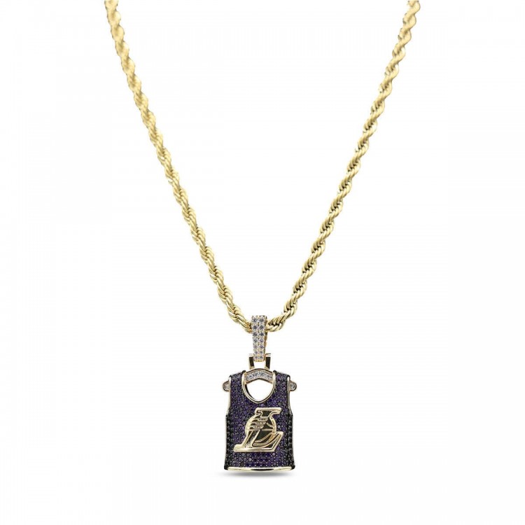 Los Angeles Lakers GLD 18K Yellow Gold Jersey Logo Pendant & 20 Rope Chain