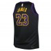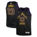 Black represents the uncertainty the Lakers felt upon arriving in Los Angeles. The trim goes from purple to black to purple as a nod to the sky after a California sunset, while the triangle script throws it back to the Lakers' early days in LA. The number set is the same style that was seen on their jerseys from 1999-2017, which highlighted another period of growth and change for the Lakers and LA.