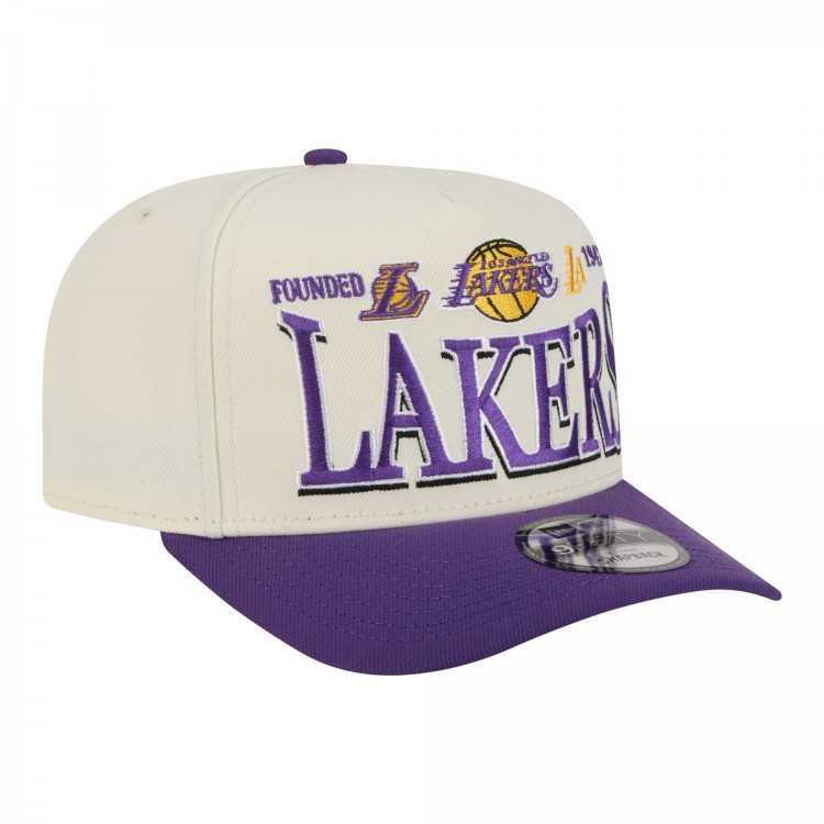 Бейсболка Los Angeles Lakers New Era Cream/Purple Stretched 2-Tone A-Frame 9FIFTY