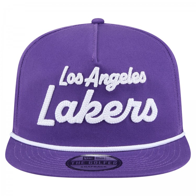 Los Angeles Lakers New Era Purple Team Text Golfer Snapback Hat