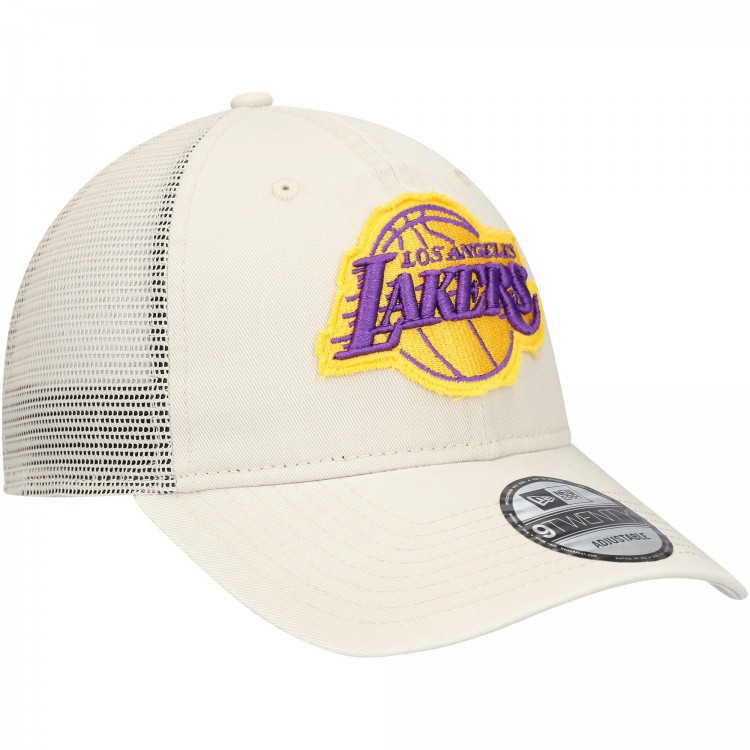 Бейсболка Los Angeles Lakers New Era Cream Rough Edge Logo Trucker 9TWENTY