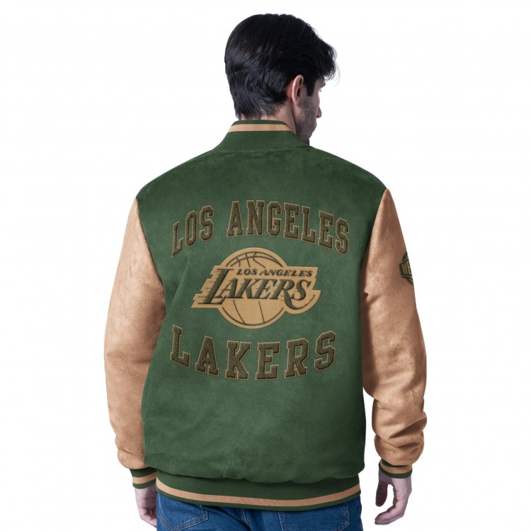 Los Angeles Lakers G-III Sports by Carl Banks Olive Infielder Faux Suede Full-Zip Varsity Jacket