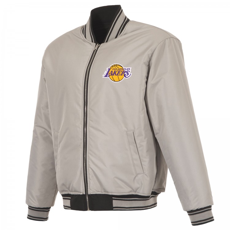 Los Angeles Lakers JH Design Black/Gray Reversible Full-Zip Flight Jacket