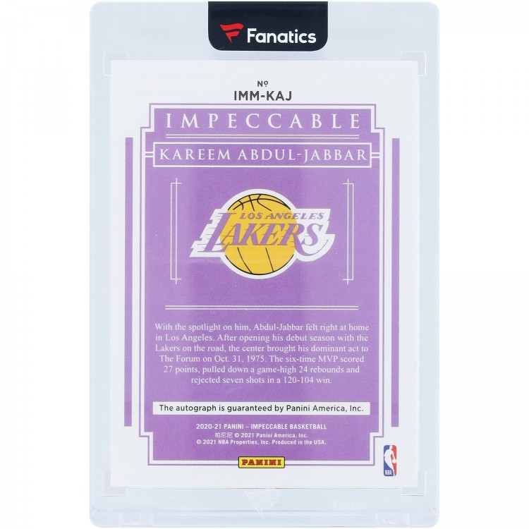 Kareem Abdul-Jabbar Los Angeles Lakers Autographed 2020-21 Panini Impeccable Immortal Ink #IMM-KAJ #23/25 Card