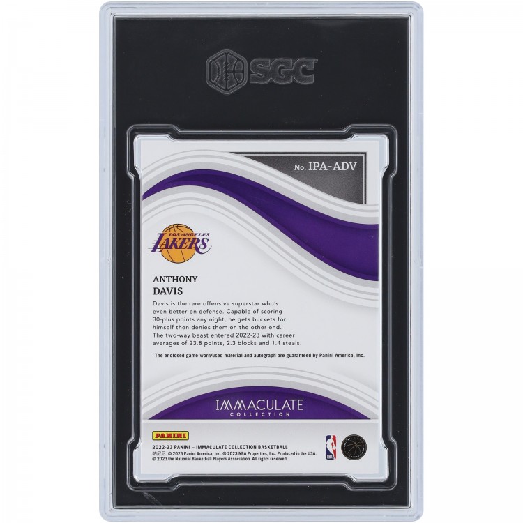 Anthony Davis Los Angeles Lakers Autographed 2022-23 Panini Immaculate Collection Gold 3 Color Relic #IPA-ADV #3/10 SGC Authenticated 9/10 Card