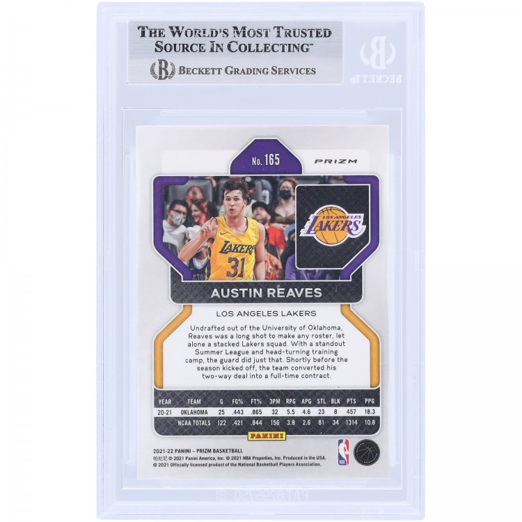 Austin Reaves Los Angeles Lakers Autographed 2021-22 Panini Prizm Green Prizm #165 Beckett Fanatics Witnessed Authenticated Rookie Card