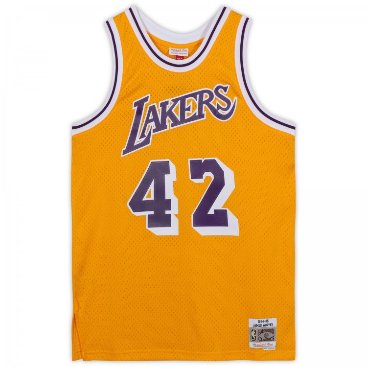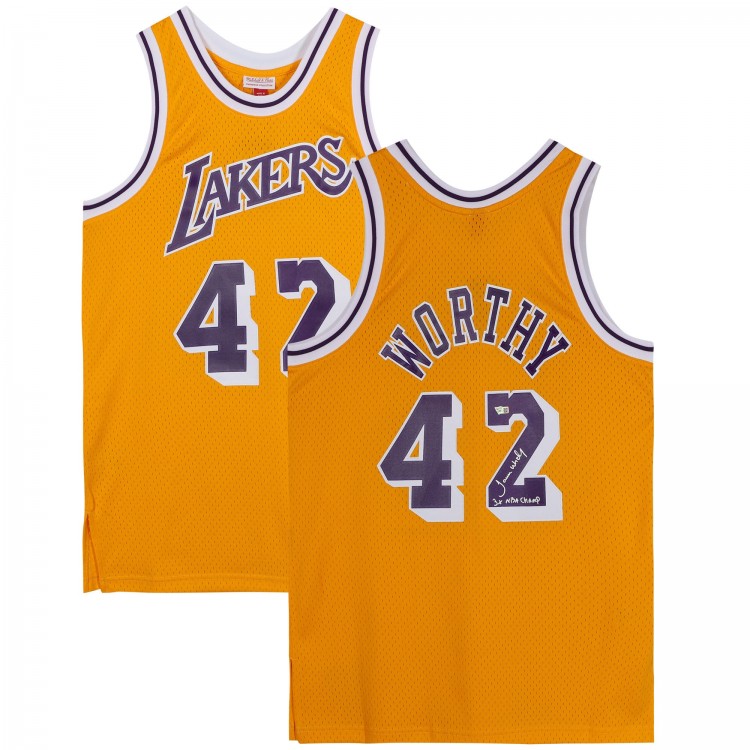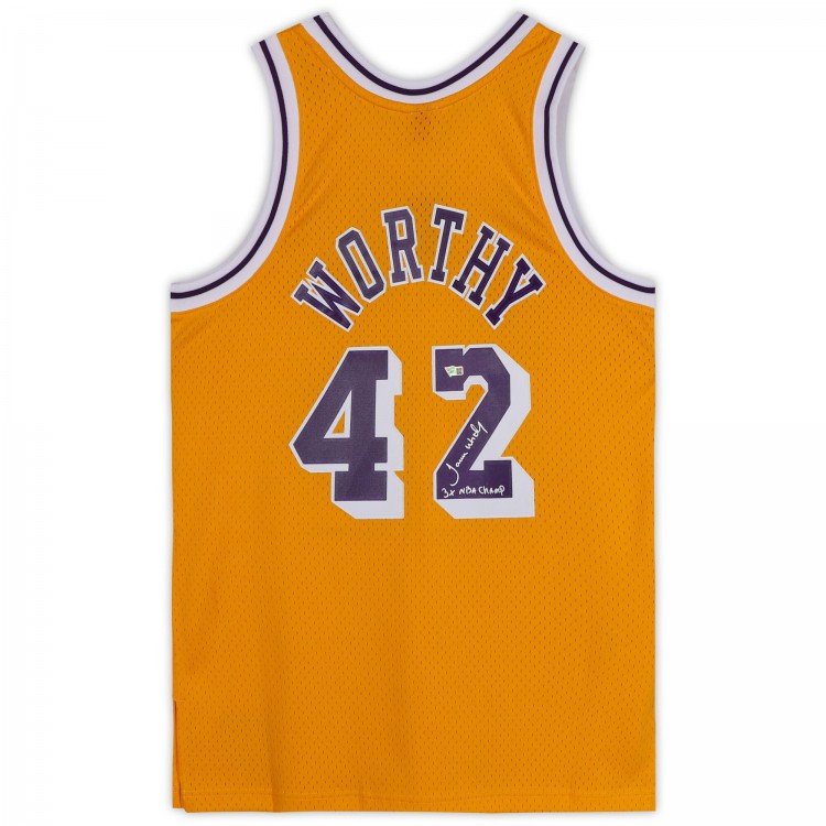 Игровая джерси Autographed Los Angeles Lakers James Worthy Fanatics Authentic Mitchell and Ness Gold 1984-1985 Swingman with 3x NBA Champ Inscription