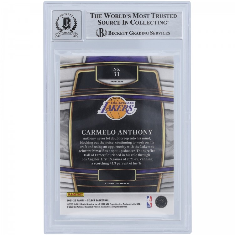 Carmelo Anthony Los Angeles Lakers Autographed 2021-22 Panini Select Silver Prizm #31 Beckett Fanatics Witnessed Authenticated 10 Card