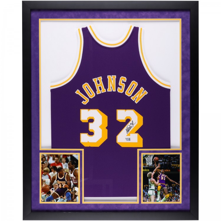 Игровая джерси Magic Johnson Los Angeles Lakers Autographed Fanatics Authentic SM Deluxe Framed Purple Mitchell & Ness Authentic