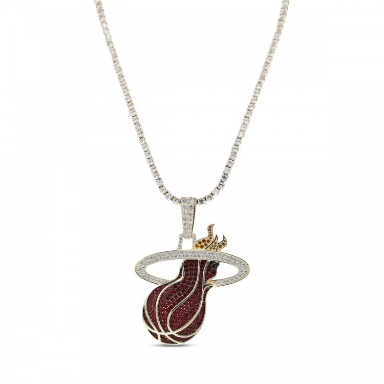 Miami Heat The GLD Shop 18K Yellow Gold Logo Pendant & 20 Tennis Chain