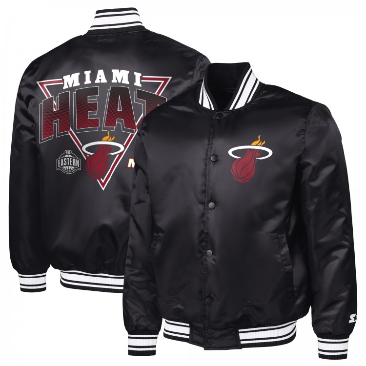 Miami Heat Starter Black Triangle Full-Snap Varsity Jacket