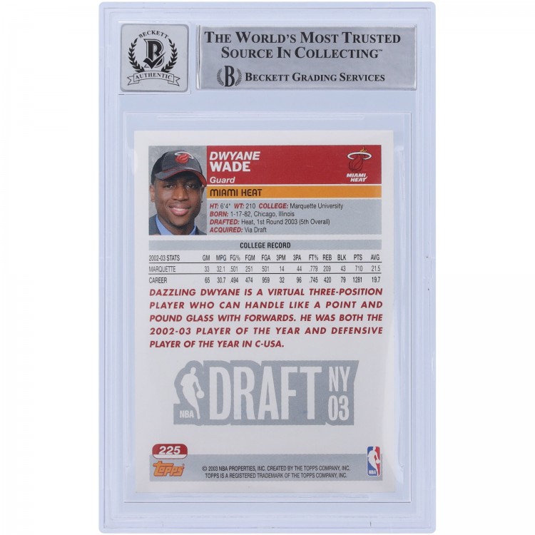 Autographed Miami Heat Dwyane Wade 2003-04 Topps #225 Beckett Fanatics Witnessed Authenticated 10 Rookie Card with NBA Debut 10-28-03 Inscription
