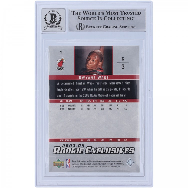 Autographed Miami Heat Dwyane Wade 2003-04 Upper Deck Rookie Exclusives Star Rookie #5 Beckett Fanatics Witnessed Authenticated 10 Rookie Card