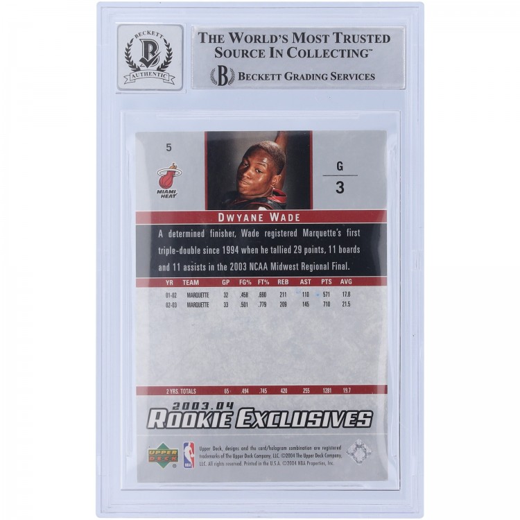 Autographed Miami Heat Dwyane Wade 2003-04 Upper Deck Rookie Exclusives Star Rookie #5 Beckett Fanatics Witnessed Authenticated 10 Rookie Card with Flash Inscription