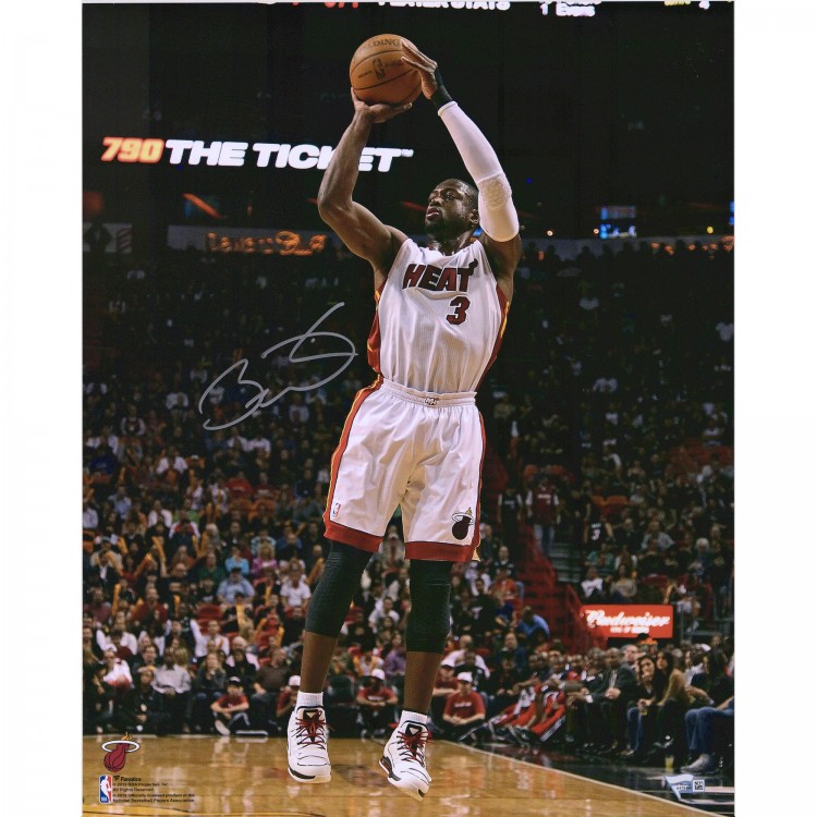 Autographed Miami Heat Dwyane Wade Fanatics Authentic 16 x 20 Shooting in White Photograph