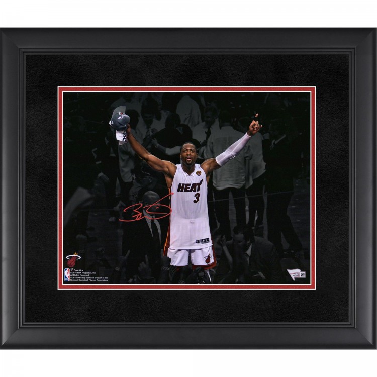 Autographed Miami Heat Dwyane Wade Fanatics Authentic Deluxe Framed 11 x 14 Spotlight 2013 NBA Finals Championship Photograph